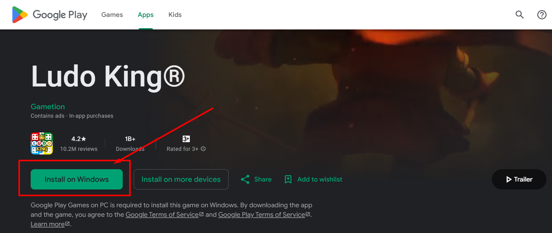 • এরপর install on windows লেখা বাটনটিতে ক্লিক করবেন। তাহলে সরাসরি লুডু গেমটি ডাউনলোড হয়ে যাবে।