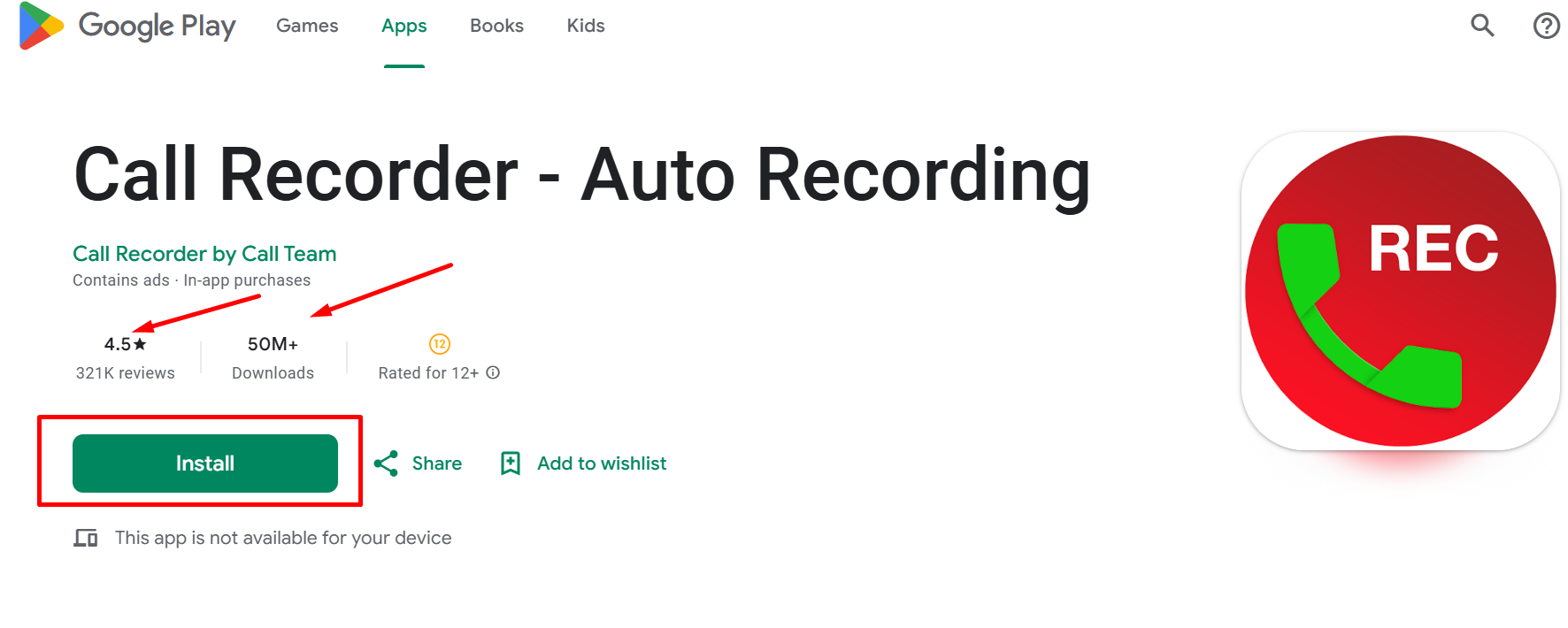 যারা ফিচার-সমৃদ্ধ এবং দ্রুত রেকর্ডিং সিস্টেম চান, তাদের জন্য এটি বেশ জনপ্রিয় একটি অ্যাপ। এই অ্যাপটি ডাউনলোড করার জন্য গুগল প্লে স্টোরে গিয়ে Call Recorder – Auto Recording লিখে সার্চ করবেন। এরপর অ্যাপটি ইন্সটল করে নিন।