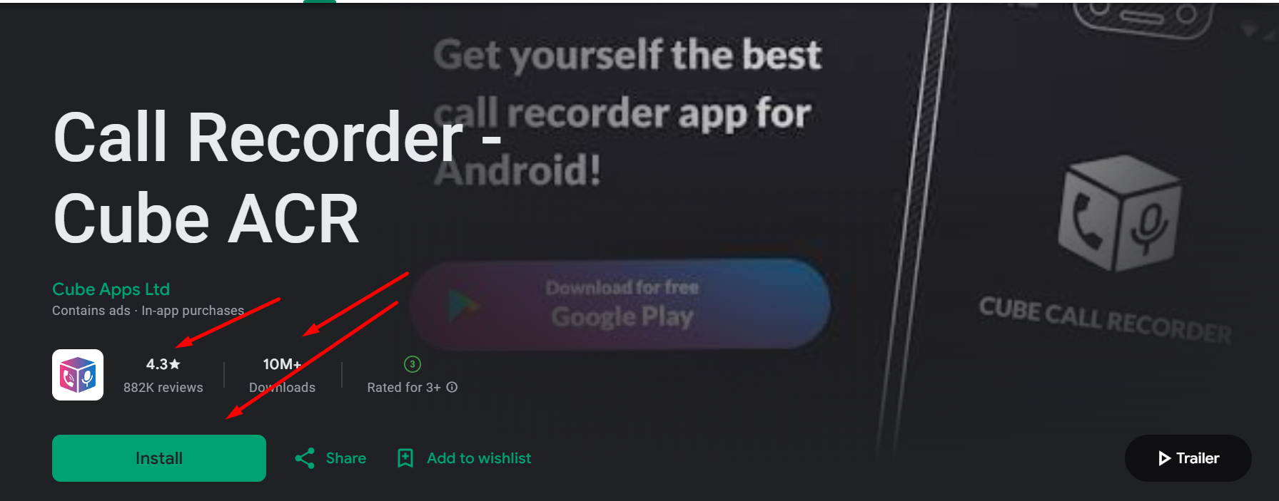 এই অটোমেটিক কল রেকর্ডার ডাউনলোড করার জন্য গুগল প্লে স্টোরে গিয়ে Cube ACR সার্চ করুন। সরাসরি পেয়ে যাবেন, এরপর ইন্সটল বাটনে ক্লিক করে ইন্সটল করে নিন।